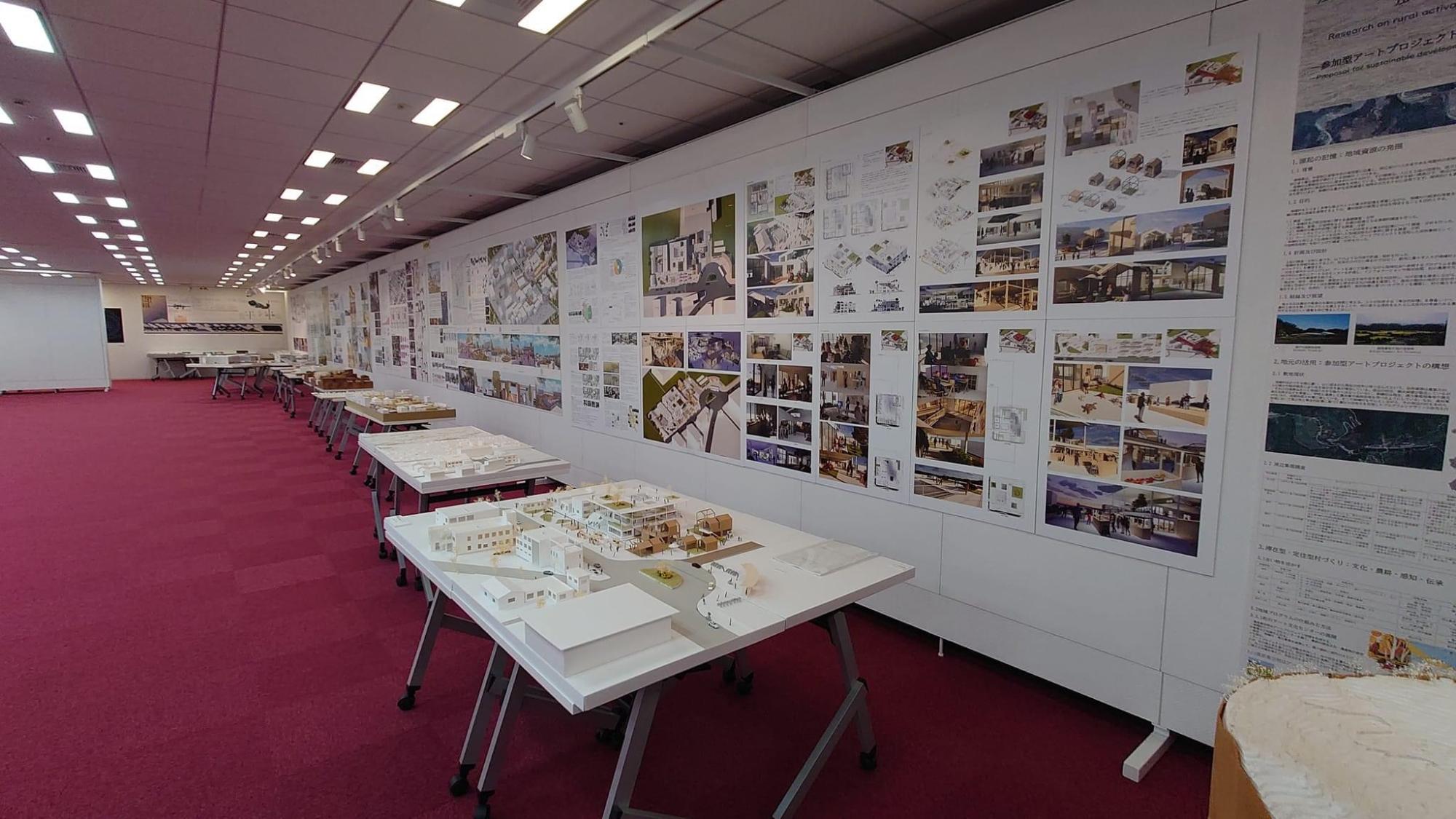 展示されている作品の中に、河南町の中心部(旧体育館、旧保育園など)の構想案があります。