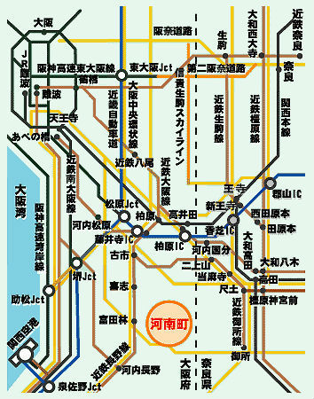 近鉄長野線「富田林」駅から金剛ふるさとバスさくら坂循環線・白木線「河南町役場前」下車すぐ