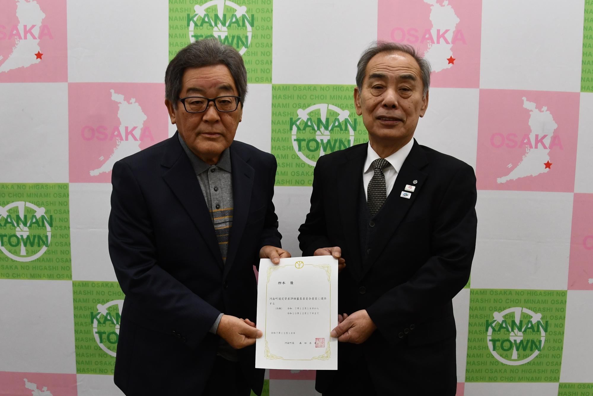 固定資産評価審査委員会委員に、令和7年河南町議会12月定例会議で同意されました柳本隆さんを選任しました。任期は令和7年12月18日から令和10年12月17日までの3年です。